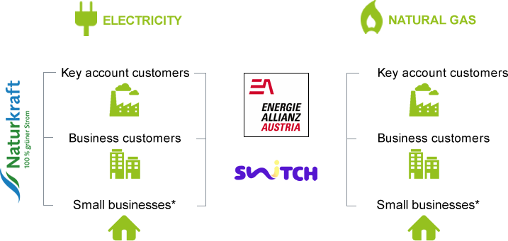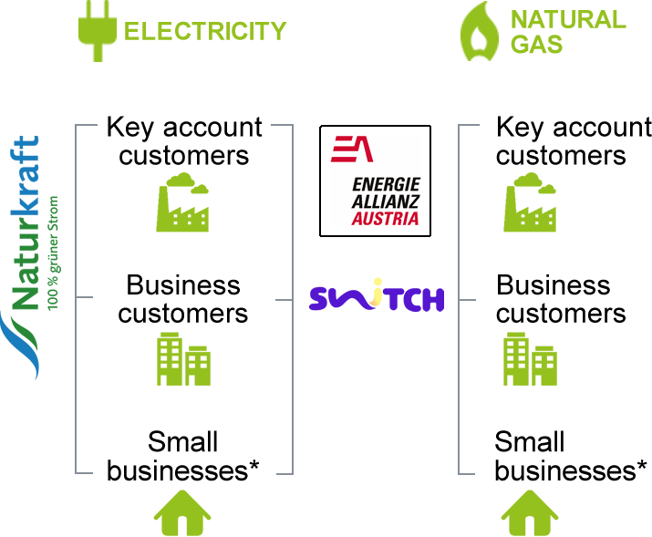 * For customers in the supply area of Wien Energie Vertrieb GmbH & Co KG, EVN Energievertrieb GmbH & Co KG and Energie Burgenland Vertrieb GmbH & Co KG, we offer our products for private customers under the brand Optima, for business customers under the brands Vario, Giga and Mega.