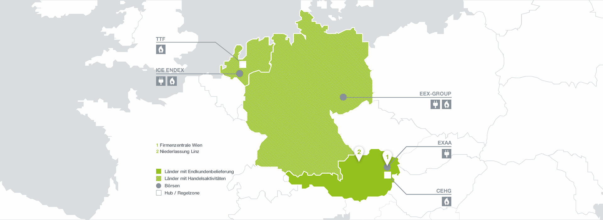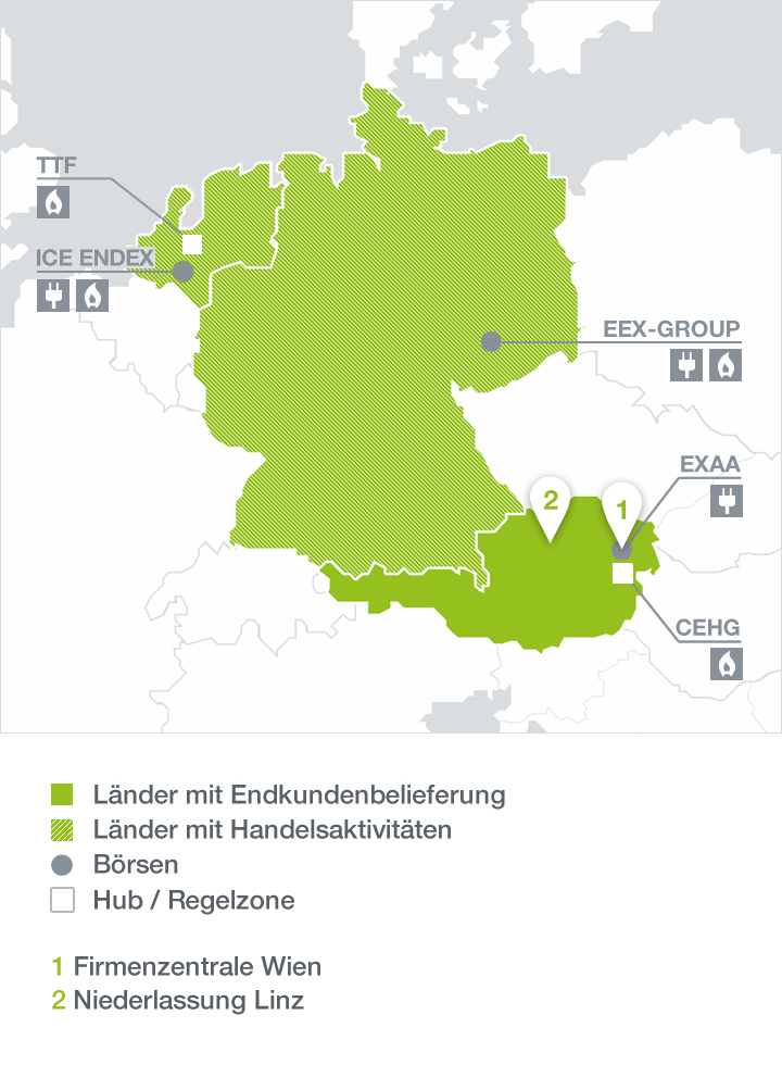 Die ENERGIEALLIANZ Austria ist auf den wichtigen Handelsmärkten in Europa tätig. Der Vorteil: Wir bieten unseren Kunden marktnahe Konditionen und Angebote.